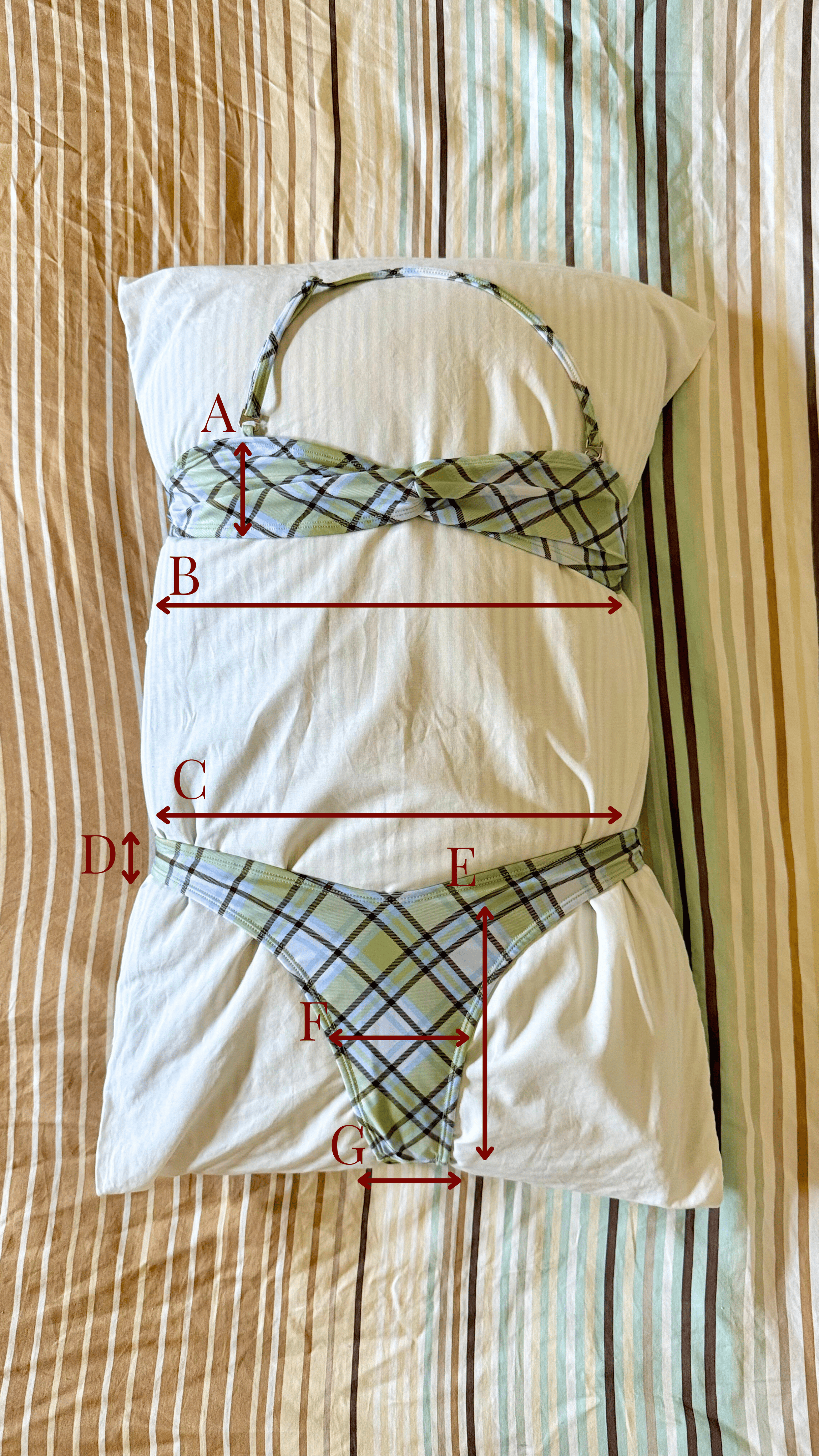 Los moldes de las bikinis buscan cubrir lo justo y necesario, por ende son bastante chiquitos. Si desea mayor cobertura, elegir un talle más grande. Para cualquier duda escribinos por instagram en @color__crema <3